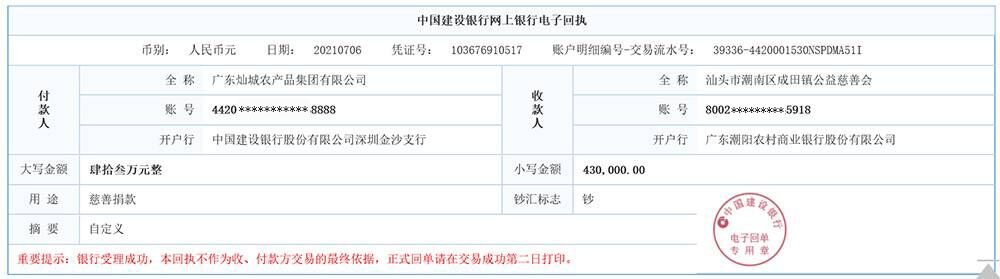 燦城集團愛心捐贈流水截圖部分展示